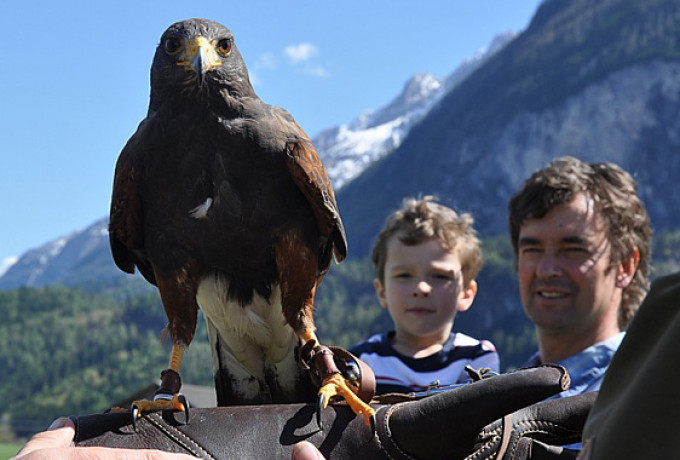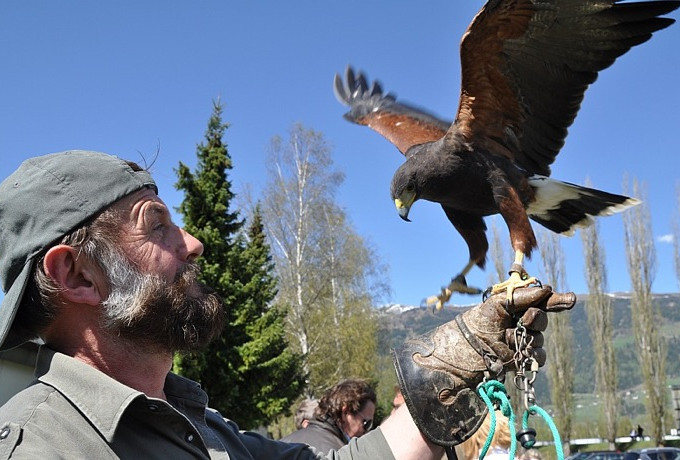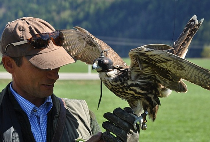 Bei der Schaujagd vor Publikum wird der Greifvogel in die Lüfte entlassen und mit einer simulierten Beute – dem "Federspiel" – wieder zurückgeholt. Kein leichtes Unterfangen. Einer der stolzen Jäger, die im Sturzflug bis zu 340 km/h erreichen und damit die schnellsten Tiere der Welt sind, musste mittels Peilsender in Lavant geortet und wieder eingefangen werden. Er hatte schlichtweg keine Lust, bei starkem Gegenwind nach Lienz zurückzufliegen.