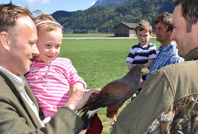 Gottfried Unterrainer und Michael Eder sind die einzigen geprüften und aktiven Beizjäger in Osttirol. Sie zeigten gemeinsam mit Kollegen ihre gefiederten Jagdhelfer, darunter einen Uhu, einen Sakerfalke, zwei Harris Hawks und den größten Vertreter seiner Art, den Gerfalke. 15 bis 20 verschiedene Tag- und Nachtgreifvögel brüten in Osttirol. Züchter gibt es mit Michael Eder nur einen.