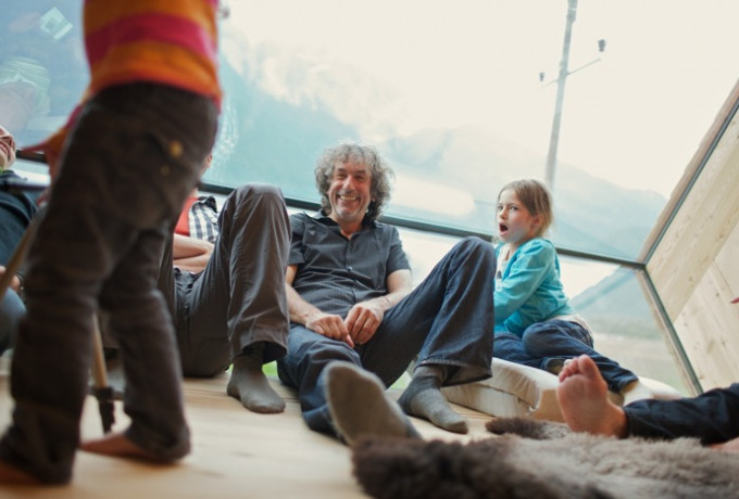 Viel Platz und Design im Inneren des originellen alpinen Wohnobjekts.