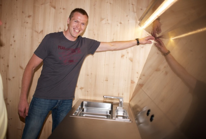 Das aus gebogenen Leimbindern ursprünglich für das Hochgebirge konzipierte Objekt ist in seinem Inneren fast luxuriös, bietet eine Menge Raum und liebevoll gestaltete, bis ins kleinste Detail durchdachte Funktionen auf 60 Quadratmetern Wohnfläche.