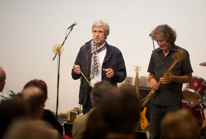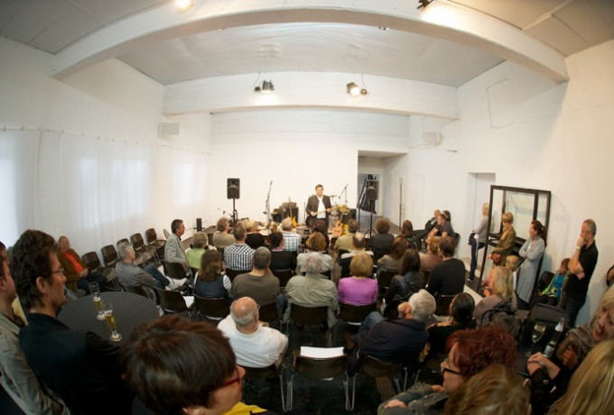 Wie in der Einladung versprochen, waren die Festreden in der Halle des Kunsthauses kurz und launig, das Gulasch tatsächlich scharf und die Musik von Cirkus Domino groovig originell, passend zum Ufogel, dessen Namen von Grafikdesigner Ed Wolfhardt stammt.
