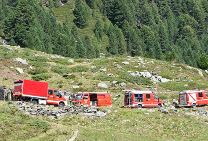 Seit den Nachmittagsstunden des 23. August brennt auf ca. 2000 Metern Höhe der Zirbenwald der "Hinteren Trojeralm" im Gemeindegebiet von St. Jakob. Ein Steilhang mit einer Fläche von ca. 10 Hektar ist betroffen, etwa acht Hektar sind bereits abgebrannt. Während der Nacht waren Löscharbeiten noch nicht möglich. Seit 5.30 Uhr ist die Feuerwehr St. Jakob mit 35 Mann und vier Löschfahrzeugen im Einsatz, verstärkt durch 14 Männer der Feuerwehren St. Veit und Hopfgarten und einem Lastzug samt Löschwasserbehälter der FW Nikolsdorf. Auch Mitarbeiter des Maschinenrings kämpfen gegen die Ausbreitung des Brandes im extrem trockenen Waldgebiet.