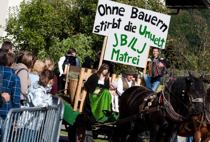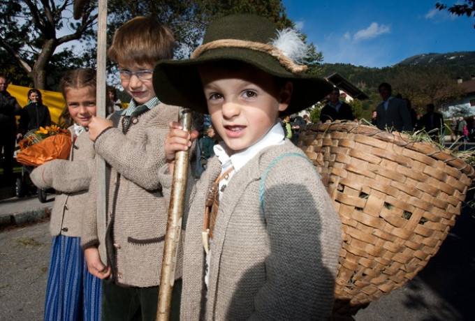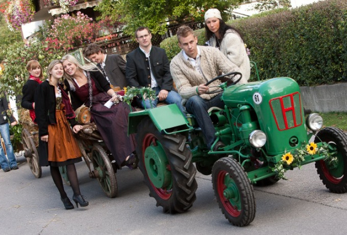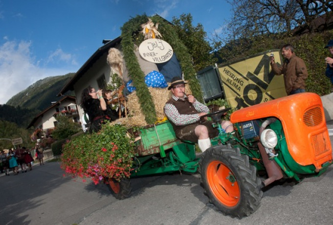 Flankiert wurde das bunte Treffen der Landjugend von einem Erntedank-Umzug mit liebevoll dekorierten Festwagen, auf denen unterschiedliche landwirtschaftliche Arbeiten mit viel Aufwand inszeniert wurden. Dolomitenstadt-Fotograf Philipp Brunner war dabei. Hier ist seine Slideshow.