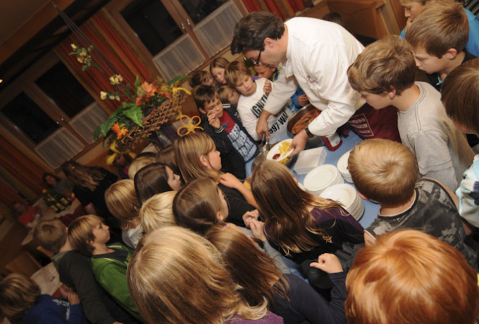 Der Höhepunkt des Abends war schließlich die Kalenderpräsentation der Tristacher Volksschulkinder. Im Rahmen einer Zusammenarbeit der Bücherei mit der Volksschule durften die Kinder mit Fotoapparaten bewaffnet das eigene Dorf erkunden. Der druckfrische Kalender für 2012 wurde mit Unterstützung heimischer Firmen produziert und ist ab sofort zum Preis von 10 € in der Bücherei Tristach und in der RLB Tirol-Bankstelle Tristach erhältlich. Der Reinerlös ist für Schulprojekte gewidmet.