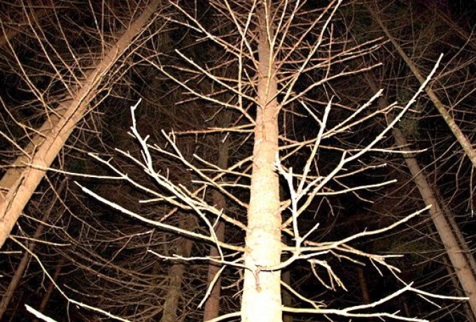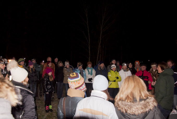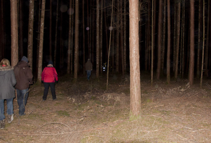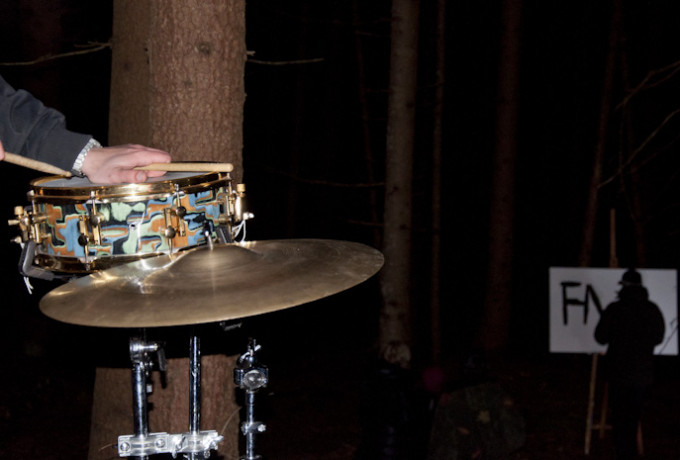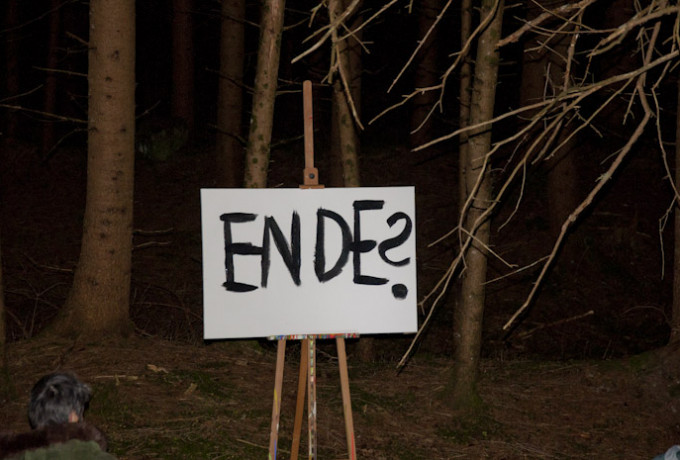 Ein Waldstück bei Huben wurde zum Schauplatz von Dieter Remlers neuester Performance namens "Reduktion". Gut 50 gespannte Besucher fanden sich mit Stirn- und Taschenlampen ausgestattet zur außergewöhnlichen Aktion ein und wagten den lautlosen Gang in den finsteren Forst.