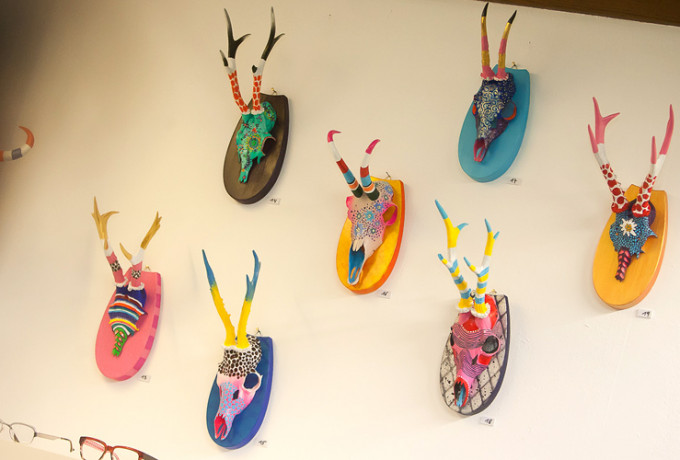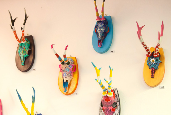 Gabriele Pichler lebt und arbeitet als Grafikdesignerin und Künstlerin in Heiligenblut. Sie nutzt neben Zeichnung und Malerei unterschiedliche neue und alte Medien. Die 44-jährige Kärntnerin liebt starke, leuchtende Farbtöne. Während einer Südamerikareise ließ sie sich von der Farbigkeit der mexikanischen Folklore mit ihren bunten Jaguar,- Rinder,- und Hirschmasken aus Pappmaschee und der Keramik inspirieren und holte nach ihrer Rückkehr in die Heimat Kisten voller Hirschgeweihe und Krickerln vom Dachboden und aus dem Keller ihrer Eltern. Gabriele Pichler begann die alten Jagdtrophäen mit knalligen Acrylfarben zu bemalen: abstrakte und florale Muster, Punkte, die in sich wieder Formen oder Linien bilden, Ringmuster, etc. zieren die Schädel, geben den Krickerln und Geweihen ein neues Gesicht. Bis zu sieben Tagen arbeitet die Künstlerin an einem Kunstwerk.