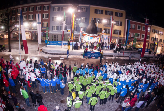 Einmarsch der Nationen auf dem Hauptplatz von Lienz.