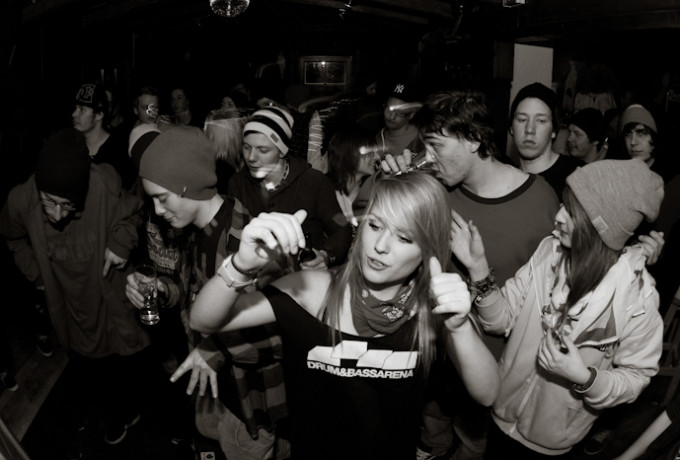 Riders in der Winternacht und Party bis in die Morgenstunden.