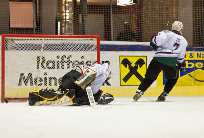 Die hatten als Geheimwaffe eine aus vier Frauen gebildete Verteidigungslinie aufgebaut und mit Lea Holzer eine echte Puck-Akrobatin im Sturm platziert. Sie schoss was das Zeug hielt und traf auch noch. So souverän wirkten die Eisdamen, dass Trainer Clemens Unterweger mitten im Spiel ganz entspannt auf eine Pizza gehen konnte.