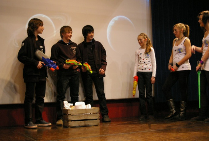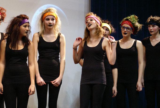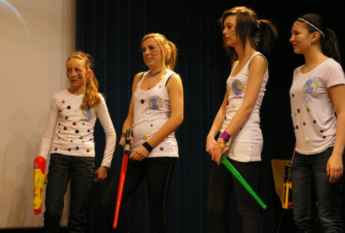Mit Lampenfieber und Eifer, mit Schwung und Humor zeigten die 50 Schüler vor vollem Festsaal wie kreativ sie die englische Sprache beherrschen und wie viel Bühnentalent in ihnen steckt.
