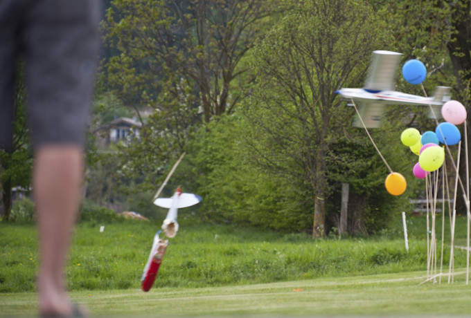 Mit dabei waren unter anderem Eurofighter Modelle und Kampfhubschrauber, die kleine Raketen abfeuerten. Die Kinder freuten sich über den Zuckerl-Regen, der auch McDonalds-Gutscheine zu Boden ließ. Die Besucher vergnügten sich außerdem bei der Fuchsjagd sowie dem Ballonstechen, bei dem leider einige Flieger zu Bruch gingen.