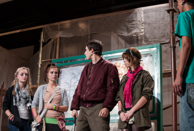 "Underground" handelt eben von Drogen und Gewalt, vom Anderssein und vom Mitmachen, von den Gesetzen der Straße und den Gefühlen junger Erwachsener. Authentisch und ohne erhobenen Zeigefinger werden heiße Eisen souverän thematisiert. Regie führte mit Charly Rabanser ein Profi, der in Workshops die jungen Schauspieler coachte. Das Bühnenbild von Alois Ellmauer verwandelte die Kolpingbühne in einen aufgelassenen U-Bahnschacht und die Musik war ein Kapitel für sich. E-Gitarren, Bass, Klavier, Schlagzeug und zwei Sänger untermalten live die Szenen aus dem Untergrund.
