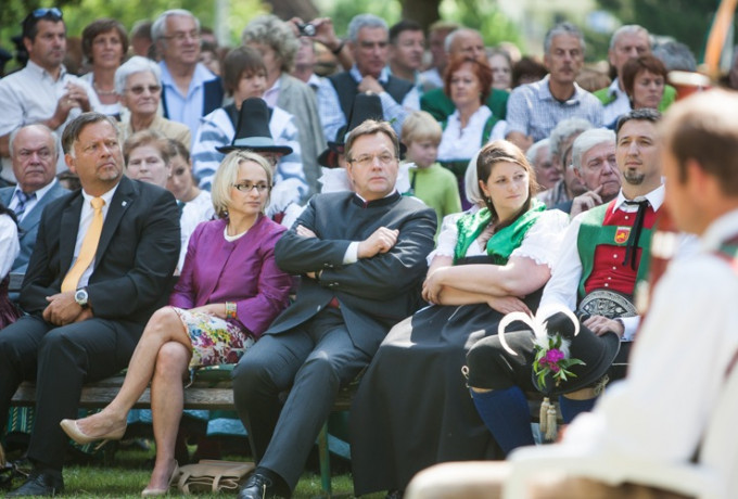 Unter den begeisterten Besuchern freute sich auch Landeshauptmann Günther Platter über den bunten Einmarsch der Kapellen aus Ainet, Assling, Bannberg, Dölsach, Gaimberg, Iselsberg-Stronach, Leisach, Nikolsdorf, Nußdorf-Debant, Oberlienz, Schlaiten, Tristach und Thurn sowie der Eisenbahner Stadtkapelle und die Stadtmusik Lienz.
