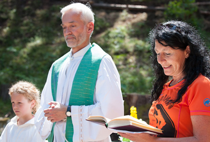 Mit Dekan und Musik wurden Wasserspielpark und Hochseilgarten eingeweiht.
