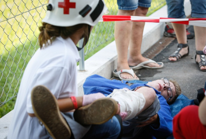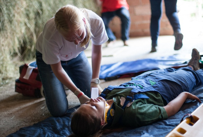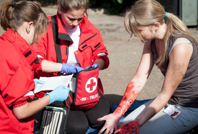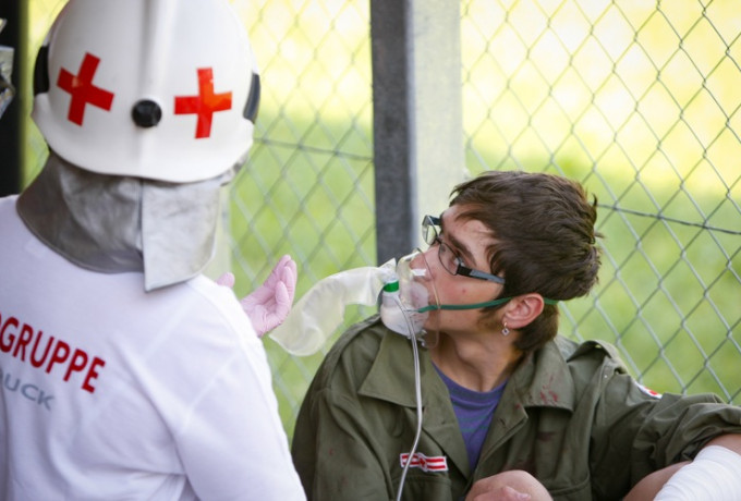 Am Samstagmorgen herrschte dann schon beim gemeinsamen Frühstück eine angespannte Stimmung. In drei Kategorien (Bronze, Silber und Gold) mussten die engagierten Jugendlichen ihr Verhalten im Ernstfall zeigen. So mussten die 12 bis 18 Jährigen zum Beispiel bei einer Explosion in einer Werkstatt ersthelfen, aber auch ein Unfall am Bauernhof und eine Unfall-Serie im Fitnessstudio waren zu bewältigen. Die Jury schaute den TeilnehmerInnen genauestens auf die Finger und bewerteten nicht nur die geleistete Hilfe, auch das Teamwork und der psychologische Umgang mit den „Unfallopfern“ wurde berücksichtigt.
