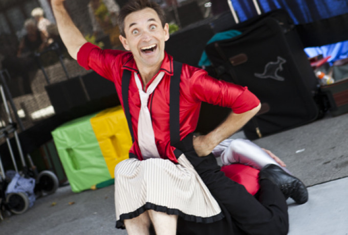 Auf dem Hauptplatz konnte man unter anderem die Shows von den Kanadiern Price & McCoy sowie eine Einführung der anderen Art in die Sicherheitsvorschriften der Fluglinie von Strange Comedy mitverfolgen.