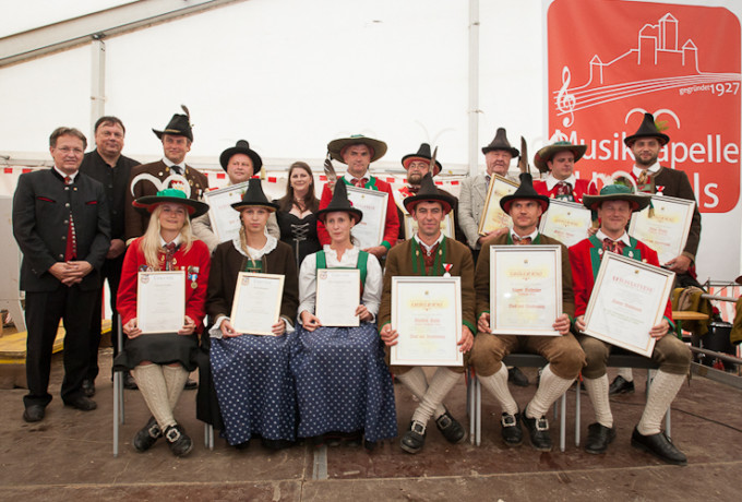 Im Zuge der Feierlichkeit wurden verdiente Mitglieder ausgezeichnet: Ehrungen für 25jährige Mitgliedschaft ging an Alois Kraler (MK Abfaltersbach), Manfred Fuchs, Gerhard Kofler und Jürgen Kollreider (MK Anras) sowie Günther Walder (MK Sillian) und Herbert Obererlacher (MK Untertilliach). 40 Jahre lang ist Bernhard Moser (MK Abfaltersbach) und 50 Jahre lang Josef Lugger (MK Obertilliach) schon aktives Kapellenmitglied. Alois Trojer, Obmann der MK Außervillgraten, erhielt das Verdienstzeichen in Silber. Das Jungmusikerabzeichen in Gold wurde Karin Brunner (MK Abfaltersbach), Maria Magdalena Goller (MK Anras) und Victoria Walder (MK Sillian) verliehen.