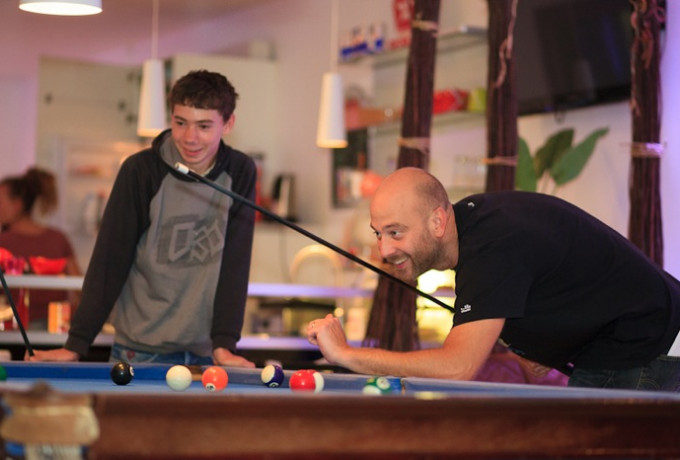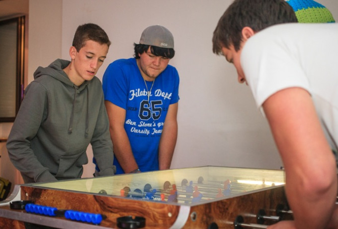 Montags, Dienstags, Mittwochs und Freitags jeweils von 17:00 bis 21:00 ist der Jugendtreff geöffnet und nicht selten sind junge Leute aus dem ganzen Talboden anwesend, was hier niemanden stört. Im Gegenteil. Hauptschullehrer Stephan Peuckert leitet den Verein und empfindet den Andrang als Kompliment: "Etwa 120 Jugendliche besuchen uns regelmäßig, im Winter oft bis zu 50 am Tag. Sie brauchen einfach ihren Freiraum." Peuckert wird von vier BetreuerInnen unterstützt, je zwei haben abwechselnd Dienst, wenn möglich ein Mann und eine Frau. "Die Jugendlichen haben zu Betreuern des gleichen Geschlechts oft den besseren Draht."