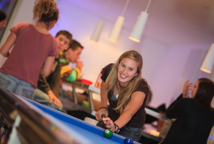 Auf 130 Quadratmetern kann die Freizeit mit verschiedensten Aktivitäten genützt werden. Es wird Billiard gespielt, gedartet, im Internet gesurft. Außerdem gibt es einen eigenen Besprechungsraum. Dort haben die jungen Menschen die Möglichkeit, mit einem Betreuer über Probleme und Sorgen zu reden.