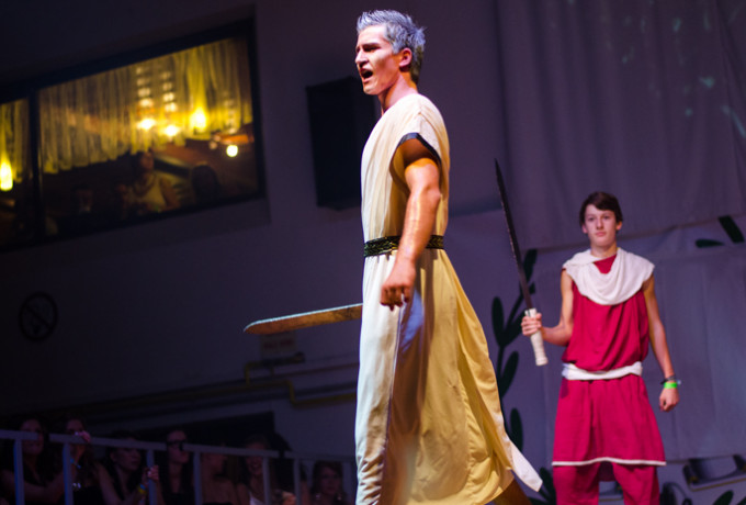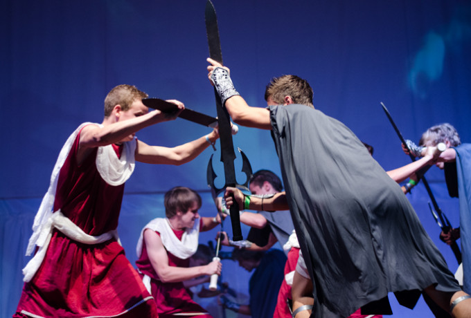 1400 Karten wechselten bereits im Vorverkauf den Besitzer. "Die Götter verlassen den Olymp" war das Motto und jetzt wissen wir, wohin sie gewandert sind. Auf die Bühne der Dolomitenhalle, wo sie mit selbst geschmiedeten Schwertern gegeneinander kämpften und in Wettstreit mit anderen tollen Showacts traten, auf die sich die Schüler ein Dreivierteljahr vorbereitet hatten.
