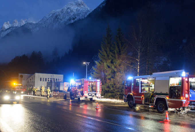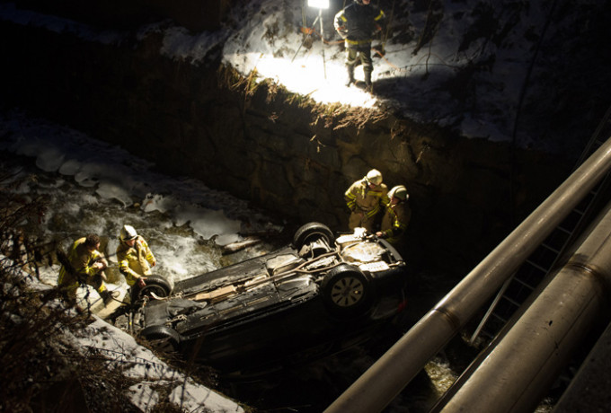Abgesehen von einer kleinen Schnittwunde am Finger überstand eine deutsche Familie am 26. Dezember unverletzt einen schweren Autounfall bei Assling. Der 26-Jährige Lenker des Pkw verlor beim Ansteuern eines Rastplatzes auf eisigem Terrain die Kontrolle über den Wagen. Das Fahrzeug schlitterte über die Böschung, überschlug sich und landete sechs Meter tiefer auf dem Dach im Bachbett. Wie durch ein Wunder krabbelten der Fahrer, seine Lebensgefährtin, ein erst eineinhalb Jahre altes Kind und der Hund der Familie praktisch unbeschadet aus dem total ramponierten Auto.