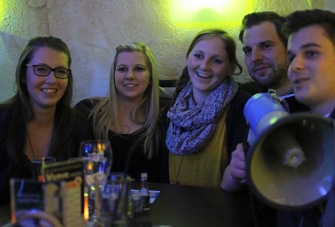 So ging es von der Vinothek ins Irish Pub, weiter zum Café Wha, anschließend ins Joy und mit s'Stöckl zur letzten Station des Lienzer Pub-Crawl. War zu Beginn die Gruppe der Pub-Crawler noch recht überschaubar, stieg die Teilnehmerzahl von Lokal zu Lokal an und erreichte mit rund 40 Personen ihren Höhepunkt. Als Schmankerl gab es für alle neben vergünstigten Getränkepreisen noch diverse Trink- und kleine Gewinnspiele.