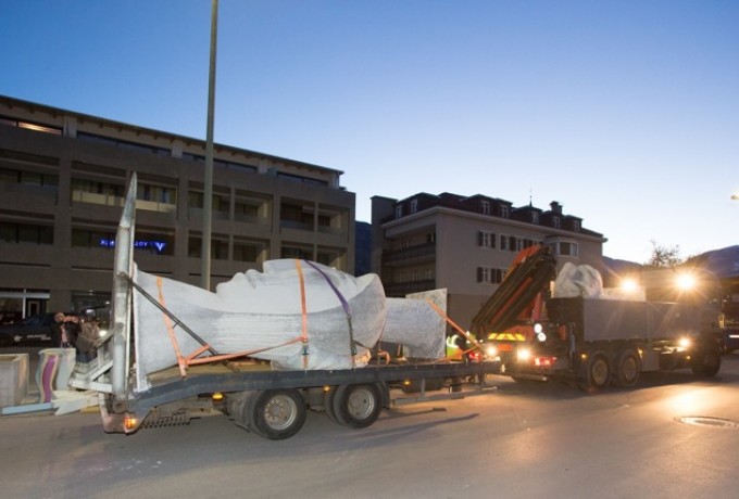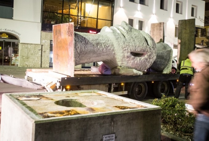 Am 16. April in den frühen Morgenstunden endete ein neunjähriges Kapitel heimischer Kunst im öffentlichen Raum. Die unübersehbaren "Köpfe" auf dem Südtirolerplatz wurden abmontiert und auf Lkw verladen. Sie traten ihre Reise nach Klagenfurt an, in ein "Zwischenlager", wie Künstler Hannes Neuhold erklärt: "Dort werden die drei Figuren zunächst restauriert und mit einer neuen, etwas veränderten Farbgebung versehen". Ein sehr helles Beige hat Neuhold im Auge, die grauen Haare, die König, Königin und Hofnarr seit den Fassadenarbeiten an der BTV bekommen haben, verschwinden.