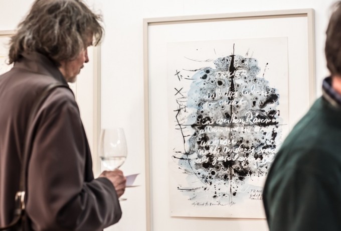 "… auf Papier" sammelt 15 KünstlerInnen um ein Thema, darunter bekannte Osttiroler wie Othmar Eder, Peter Raneburger und Hermann Pedit, sowie eine ganze Reihe von Klassikern aus dem Portfolio des Galeristen, wie Gunter Damisch, Hans Staudacher, Hubert Scheibl und die Gugging-Künstler Laila Bachtiar und Karl Vondal. Die Einführung zur Vernissage am 17. April lieferte Kunstwerkstatt-Leiter Rudolf Ingruber, Philipp Brunner fotografierte.