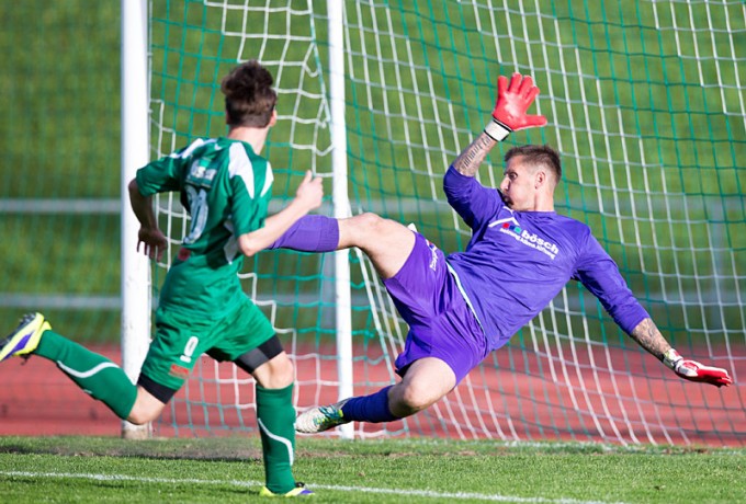 Danach plätscherte das Spiel vor sich hin und bei den Hausherren spürte man die Verunsicherung nach den letzten beiden Niederlagen. Wie aus dem Nichts kamen die Gäste, die bis dahin nur durch einen erneuten Freistoß von Roman Gaspersic gefährlich wurden, in der 74. Minute zur riesengroßen Ausgleichschance. Wolfram Hierländer hatte sich auf der rechten Angriffsseite durchgesetzt und tauchte alleine vor dem Lienzer Tor auf. Dort schloss er allerdings zu überhastet ab und scheiterte an Christoph Stocker, der den Ball gerade noch abwehren konnte.