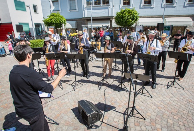 Zum Höhepunkt des Brunches kam dann die Big Band "Jazz we can". Die von Musikschullehrer Wolfram Dullnig gecoachte Truppe lieferte den passenden Sound zum sonnigen Vormittag in der Dolomitenstadt und bot dem Publikum elegante Jazz-Klänge. Für uns war Fotograf Philipp Brunner vor Ort und fing die Stimmung am Johannesplatz ein.