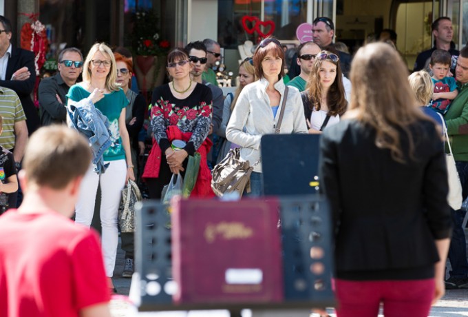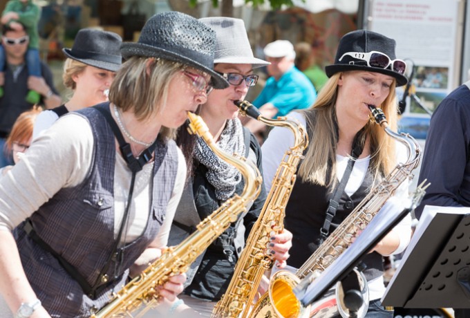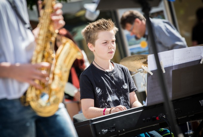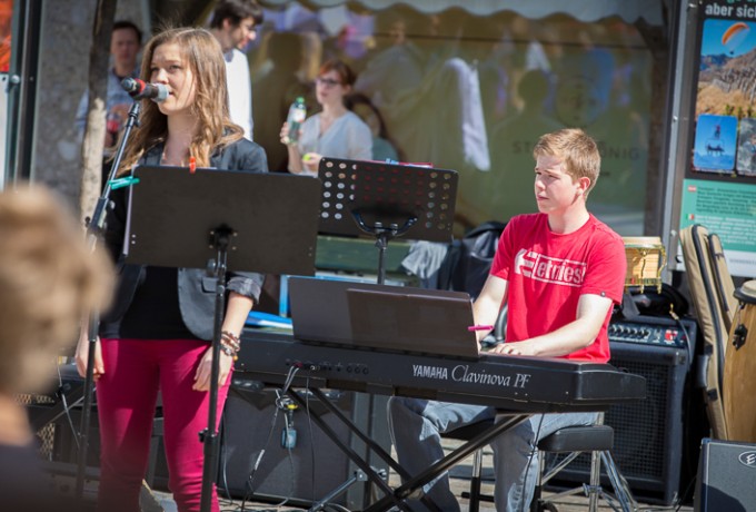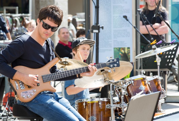 Gerolf Stolz startete mit seinem Ensemble in den musikalischen Vormittag – mit lässigen Harmonien lockten die Schüler der Landesmusikschule zahlreiche Zuhörer. Anschließend präsentierte Markus Zlöbl mit seinen Schülern feinsten Rock und Pop. Bemerkenswert waren dabei die "Skills" der jungen Musiker auf ihren Instrumenten sowie die stimmlichen Leistungen.