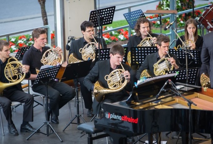 Verstärkt durch das "Hornensemble" unter der Leitung von Hans Moser meisterten SchülerInnen und LehrerInnen der Musikschule ihre – zum Teil sehr anspruchsvolle – Konzertaufgabe mit Bravour vor viel lokaler Prominenz und einer begeisterten Anhängerschar. Philipp Brunner war mit der Kamera dabei.