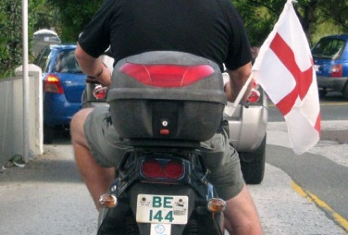 Dann fing auch noch das mit den Flaggen an: Wo man hinfährt auf Bermudas Straßen kommen einem Lastwagen, Motorräder und Autos mit im Fahrtwind wehenden Fähnchen entgegen. Die Lastwagen der hiesigen Gärtnereien, die vorwiegend in portugiesischer Hand sind, schmücken sich mit riesigen grünroten Flaggen und Bannern unter der Windschutzscheibe. Die englischen roten Kreuze sind an unzähligen Fahrzeugen befestigt. Immer noch. Es flattern aber auch viele deutsche, brasilianische, italienische, einige spanische, französische und argentinische und vereinzelt auch japanische Fähnchen herum, mitunter kommt einem auch ein Schweizer Kreuz entgegen.