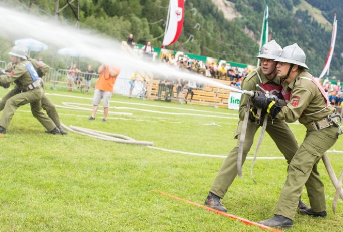 „Wasser Marsch“ war das Motto am Samstag, 12. Juli in St. Johann im Walde. Die Ortsfeuerwehr organisierte in Zusammenarbeit mit dem Bezirksfeuerwehrkommando Lienz den 23. Bezirks-Nassleistungsbewerb. Bei diesem Wettbewerb muss zunächst eine Schlauchleitung vom Saugkorb bis hin zu zwei Strahlrohren aufgebaut werden, dann wird über einen Bottich Wasser angesaugt und es gilt, mit jedem Strahlrohr eine Dose zu treffen.