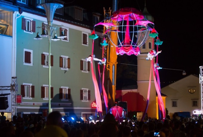 Es hat schon Tradition beim Lienzer Straßentheaterfestival "OLALA", dass am Ende, beim großen Finale am Samstag auf dem Lienzer Hauptplatz, auch ein großer Kran zum Einsatz kommt. Heuer hievte er die italienische Luftakrobatikgruppe "Sonics" in den Nachthimmel über der Stadt. "Meraviglia" war der Titel ihrer Vorstellung, mit der eine Woche voll bunter Akrobatik und Kleinkunst auf den Plätzen der Stadt zu Ende ging. Den filmischen Rückblick und ein kreatives Dolomitenstadt-Fotospecial bringen wir zu Wochenbeginn.