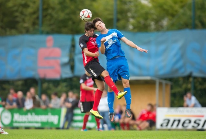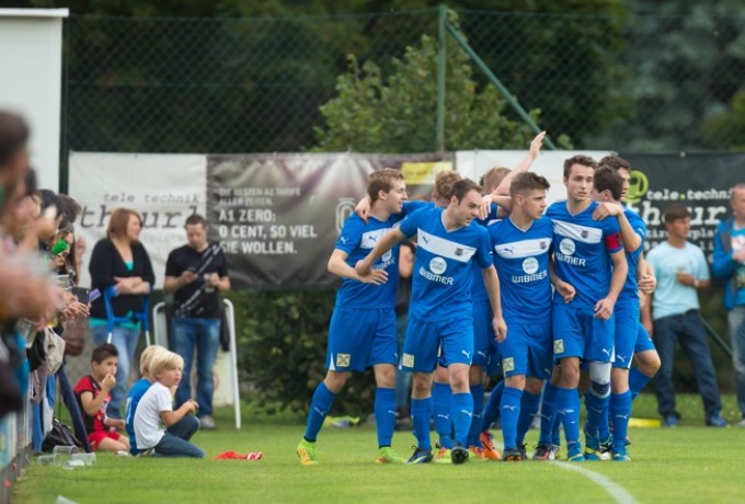 Nach einer kurzen Abtastphase beider Mannschaften nahm das Derby nach acht Minuten etwas Fahrt auf. Doch Freistöße von Peter Klancar bzw. Rene Scheiber gingen jeweils über das gegnerische Tor.