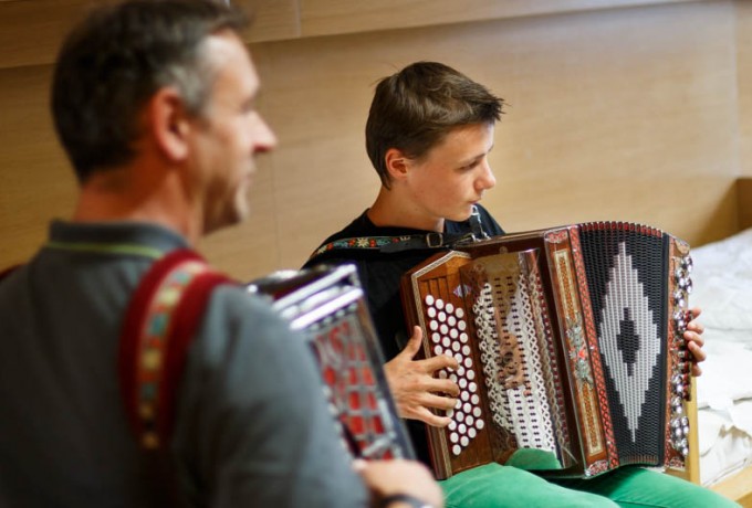 Der Charme dieser Veranstaltung, die von der Arbeitsgruppe Osttirol des Tiroler Volksmusikvereins organisiert wird, liegt im Mix aus professionellem Workshop und entspanntem Musiziervergnügen an einem Ort, der perfekt dafür geeignet ist. Ein Team von erfahrenen ReferentInnen betreute die Teilnehmer, gab gute Tipps und unterstützte MusikerInnen und SängerInnen beim Erlernen neuer Lieder und Stücke. Egal ob bestehende Gruppe oder „Einzelkämpfer“, Anfänger oder Fortgeschrittener, jeder lernte etwas dazu und neue Musikantenfreunde kennen. Dolomitenstadt-Reporter Marco Leiter mischte sich mit Film- und Fotokamera am Samstag unter die übenden und probenden Musikfreunde.