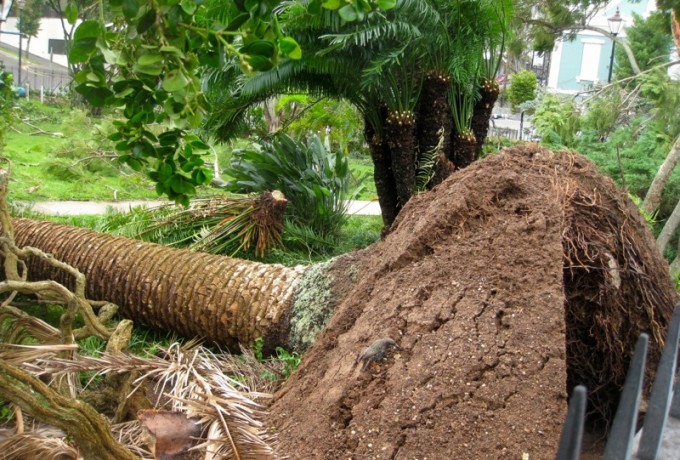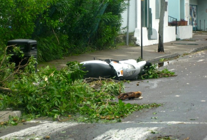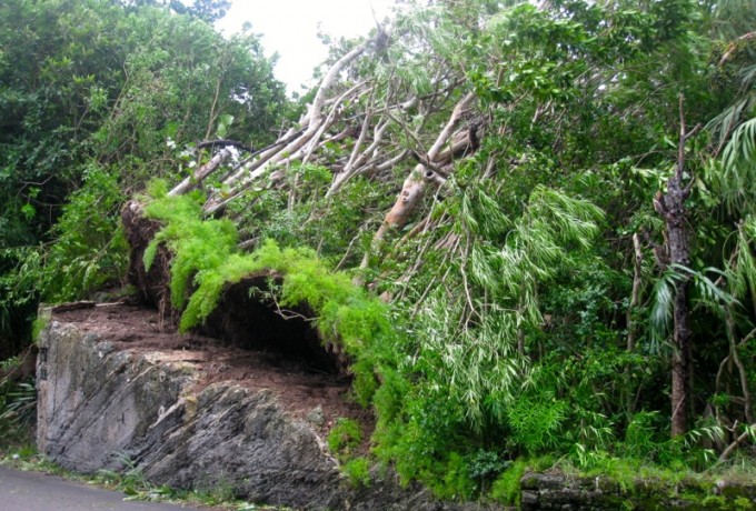 Einen der schwersten Stürme, den Bermuda gesehen hat, haben wir gleich in unserem ersten Jahr hier durchlebt. Am 5. September 2003 hat "Fabian", ein Hurrikan der Kategorie 3, mit durchschnittlichen Windgeschwindigkeiten von 200km/h (mit Böen weit darüber) auf Bermuda vier Menschenleben gefordert, unzählige Gebäude zerstört und die Natur auf Monate arg in Mitleidenschaft gezogen: Viel Salz und wenig Niederschlag haben die grünen Blätter vieler Pflanzen verbrannt.