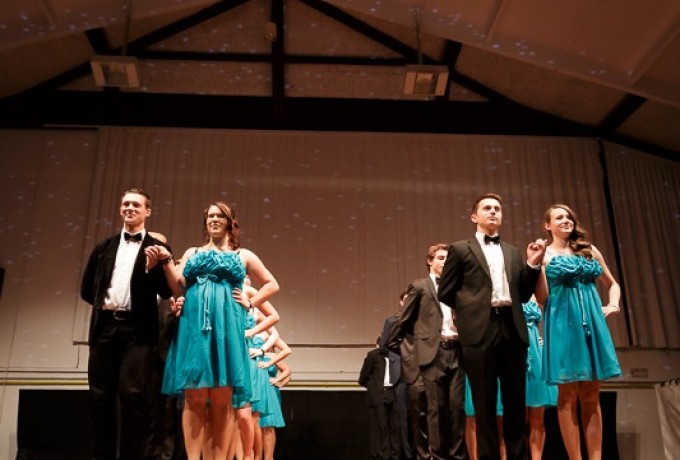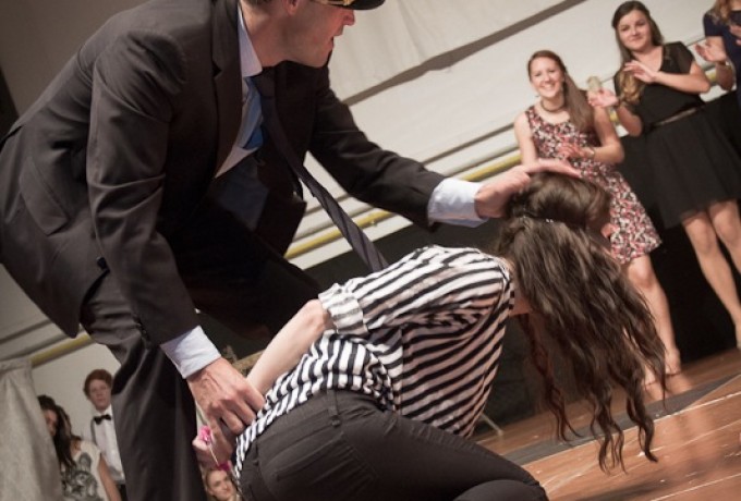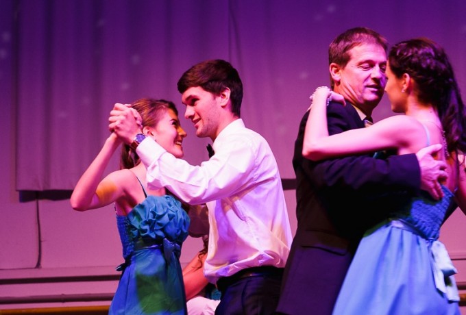 Die Mitternachtseinlage, nach der Choreographie von Ines Trager, begleitete die Schülerinnen und Schüler auf eine abenteuerliche Expedition rund um den Globus. Vom farbenprächtigen Indien ging es ins Spielerparadies Las Vegas und weiter in die Millionenmetropole New York, die ja auch schon für den Maturaball des Gymnasiums als Schauplatz diente. In Paris, der Stadt der Liebe, ließen sich die Darsteller verführen, ehe in Moskau gemeinsam auf das Leben angestoßen wurde. Dann war das Abenteuer auch schon wieder vorbei, und die Schüler tanzten im Finale zu Beyoncés Hit „Who run the world? Girls!“.