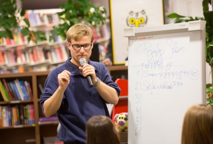 Stefan Abermann moderierte den ersten "Poetry Slam" in der Stadt.