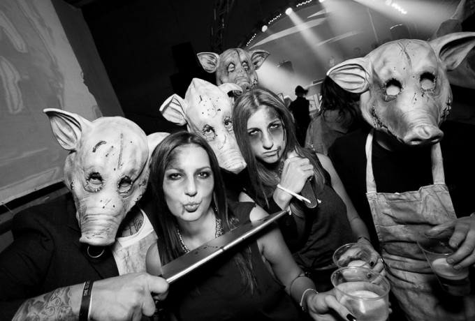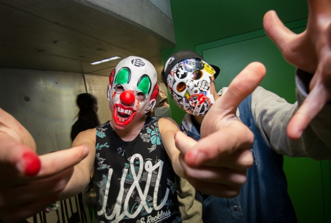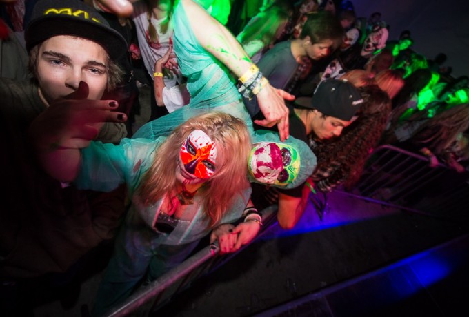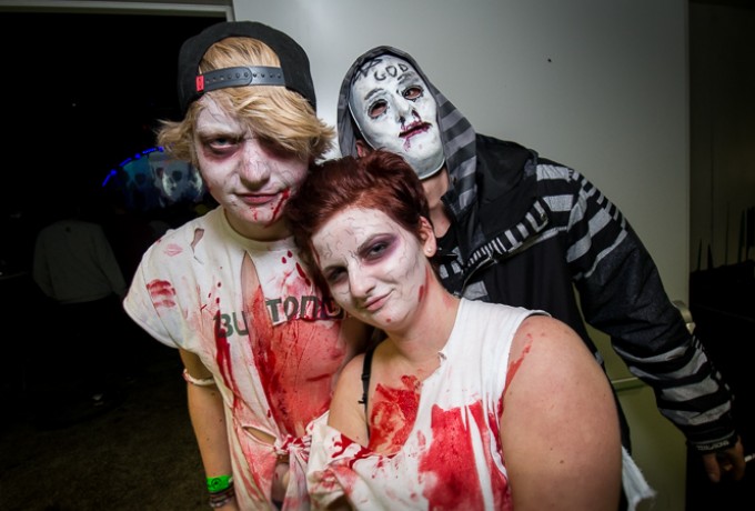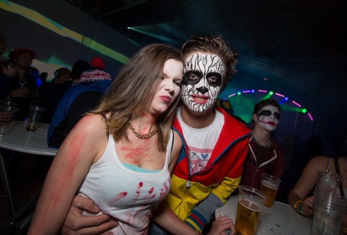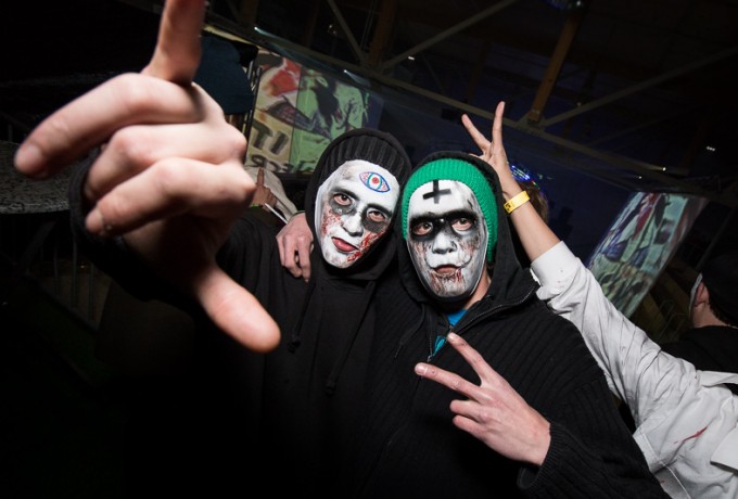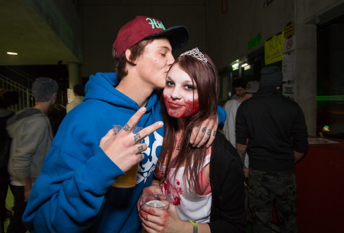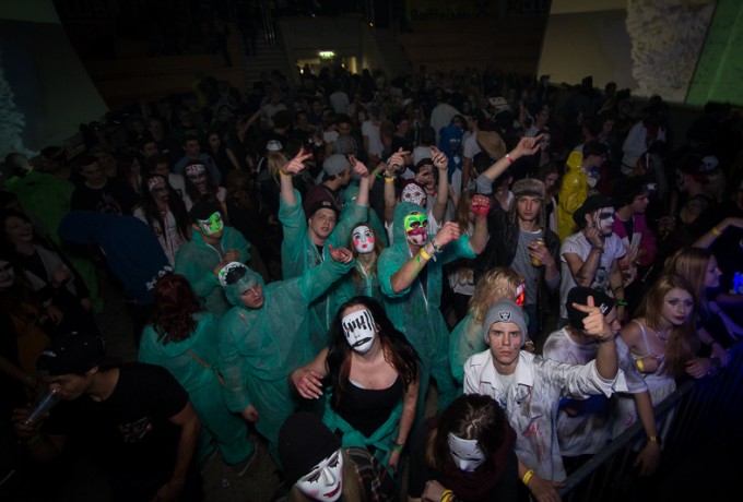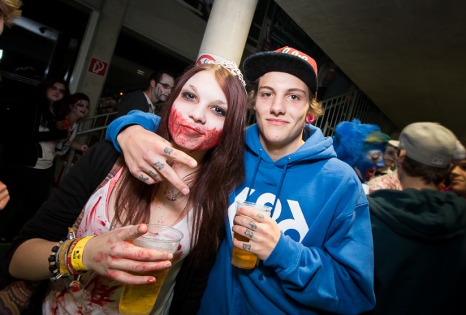 Jeremy Glenn and Dylan Jones sind seit zehn Jahren im DJ-Geschäft und Ikonen der DnB-Szene. Als "The Upbeats" mischen sie weltweit die Dancefloors auf, meist mit weniger grausigen Gestalten als am 31. Oktober in der Peggetz. Dort trafen sich in der RGO-Arena gut 500 Clowns, Mörder, blutverschmierte Schlachter und andere Halloween-Wahnsinnige zu einem nächtlichen Rambo Zambo der besonderen Art. Was bis in die Morgenstunden dauerte, ist mit Worten kaum zu beschreiben. Deshalb war Marco Leiter für dolomitenstadt.at vor Ort, um die Halloween-Party No. 1 in Osttirol ins Bild zu rücken. Viel Spaß!
