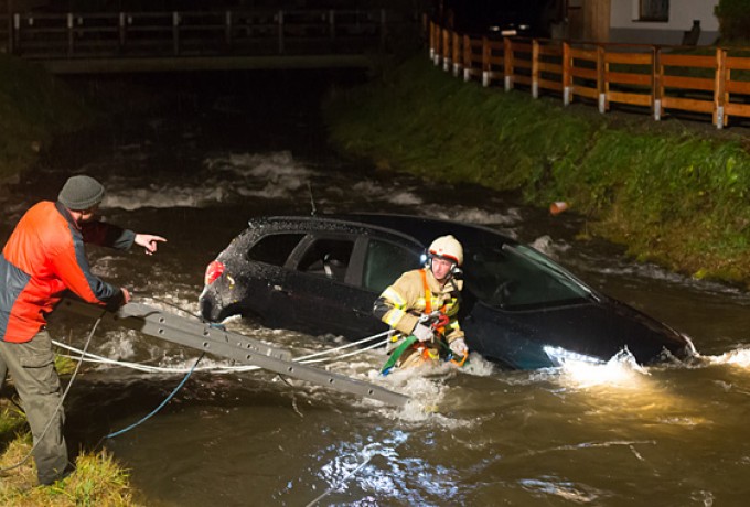 Es regnete stark als eine 49 Jahre alte Steirerin am 5. November um 22.40 Uhr mit dem Auto durch Innervillgraten in Richtung Kalkstein fuhr. Kurz nach der Pfarrkirche kam ihr ein Fahrzeug entgegen. Durch den Regen und die Blendung verlor die Frau die Orientierung und die Kontrolle über ihr Fahrzeug, geriet auf die linke Straßenseite und manövrierte den Pkw über die zwei Meter hohe Böschung in den Villgraterbach.