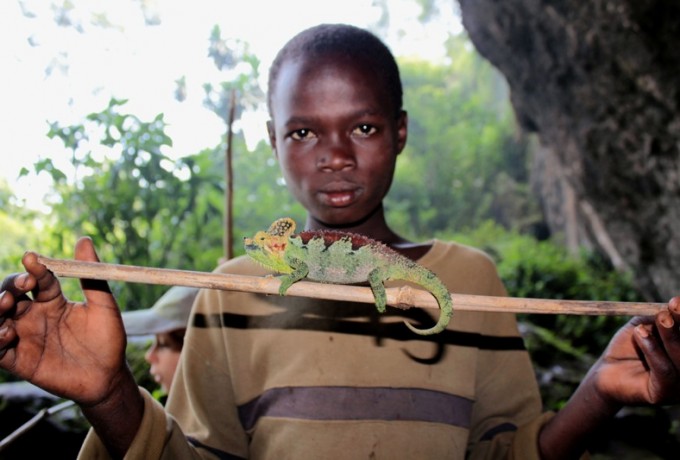 Die Hänge brechen in roten Klippen ab, an den steilen Flanken wächst Kaffee, auf den Zwischenplateaus weidet das Vieh. Allerorts wird gejätet, gemolken, Holz gemacht. Unberührt sind nur die Wasserfälle. Wir wandern vom einen zum anderen, Kinder begleiten uns neugierig und kichernd. Der zehnjährige Moses hat ein Chamäleon gefangen und zeigt es uns stolz. Unaufgeregt klettert es das Stäbchen rauf und runter, lässt sich in der Hand halten und bestaunen. Die Luft ist so sauber, dass sie in der Nase brennt, und wäre da nicht das nahe oder ferne Rauschen der Fälle, würden wir nur hier und da ein paar Frauen beim Wäschewaschen lachen hören. Sonst ist es still. Keine Shopping-Malls, kein Jingle Bells und kein Ho-Ho-Ho in Gottes Tempel Natur.