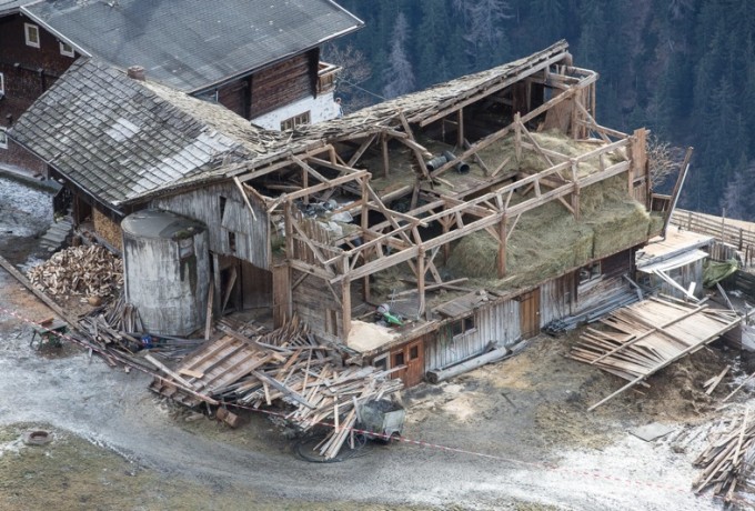 Mit der Wucht eines Orkans verwüstete am 10. Jänner um 10.15 Uhr ein mächtiger Windstoß in Glanz, Gemeinde Matrei, ein landwirtschaftliches Gebäude und dessen Umgebung. Der Stadel wurde zur Gänze abgedeckt, Teile des Daches und des Gebäudes flogen 150 Meter weit durch´s Gelände. Zwei Autos, die vor dem Haus parkten, wurden durch herabfallende Dachbretter und Tragwerksteile beschädigt. Menschen oder Tiere kamen nicht zu Schaden. In der Nähe des betroffenen Bauernhofes knickten die Sturmböen rund 40 Fichtenbäume um. Dabei wurde eine Straße auf einer Länge von ca. 150 Metern verlegt und unpassierbar. Die Aufräumungsarbeiten sind im Gang.