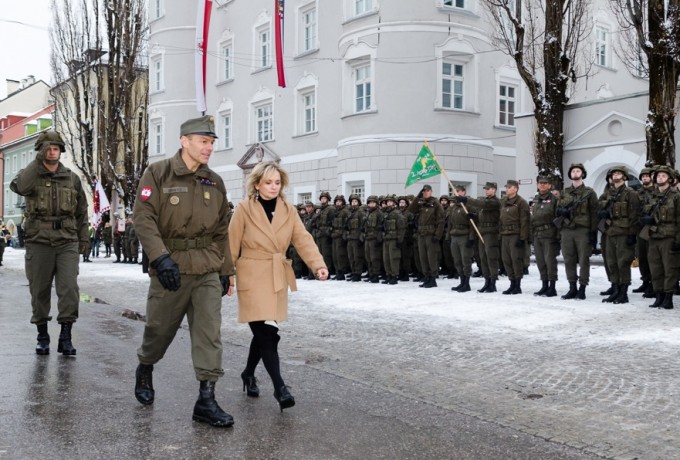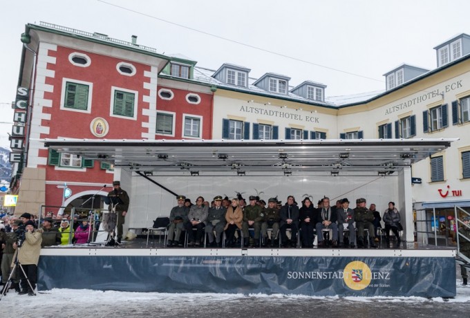 Noch hat Lienz zwei Kasernen, bald wird es nur noch eine sein. Die "Truppenstärke" soll in der Dolomitenstadt allerdings nicht reduziert werden und damit bleibt Lienz wohl auch weiterhin eine Ausbildungsstätte für Rekruten, von denen 300 am 30. Jänner angelobt wurden. Begleitet wurde der Festakt von manch großem Wort und den Klängen der Tiroler Militärmusik, die entgegen erster Befürchtungen nicht dem Rotstift des Ministeriums zum Opfer fallen wird. Nach dem konzertanten Auftakt auf dem Johannesplatz marschierte die Truppe zur eigentlichen Angelobung auf dem Hauptplatz auf, wo auch die mobile Hightech-Bühne des Stadtmarketings zu einem ihrer Auftritte kam.