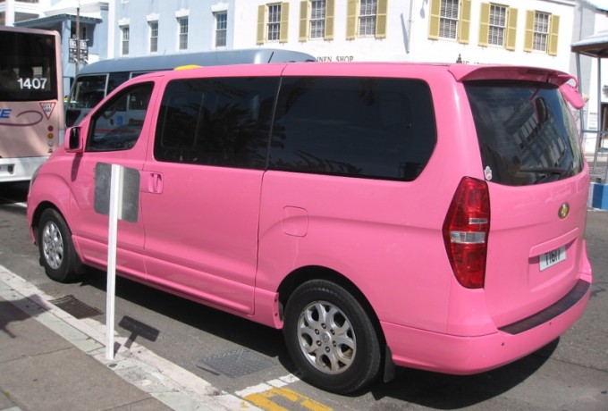 Die öffentlichen Busse– und von denen gibt es eine ganze Menge – präsentieren sich alle in Schweinchenrosa. Die Bushaltestellen sind, falls zusätzlich weder Bank noch Unterstand vorhanden sind, nur an einem grellpinken, im Scheinwerferlicht reflektierenden Pfosten zu erkennen. Fairerweise muss dazu gesagt werden, dass nur die Pfosten, die in Richtung Hauptstadt führen rosa sind, die von der Hauptstadt wegführen sind azurblau.