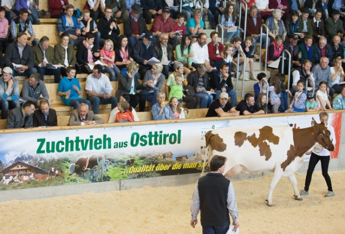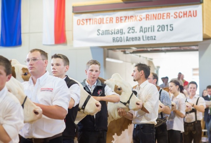 Der Parkplatz vor der RGO-Arena konnte am Samstag, dem 15. April, bei Weitem nicht dem großen Andrang standhalten. Vor der Halle standen Marktstände, quer über das Areal gab es Gastronomie und obwohl die Tische meist voll waren, war die Arena selbst über Stunden bis auf den letzten Platz besetzt. Die Stimmung war dementsprechend gut. Die Bezirksrinderschau diente weit mehr als dem Herzeigen der schönsten Kühe des Landes. Es ging um Austausch, Fachgespräche, aber auch darum, sich wieder einmal zu treffen und am Volksfest teilzunehmen. Trotzdem überwog die Konzentration auf die Tiere, und schön sowie kraftvoll waren die präsentierten Rinder wirklich. Die Preisrichter sprachen von Eleganz, Balance, Korrektheit des Körperbaus, betonten die gute Pflege und hatten vor allem lobende Worte für die Osttiroler Zuchttiere und ihre Halter.