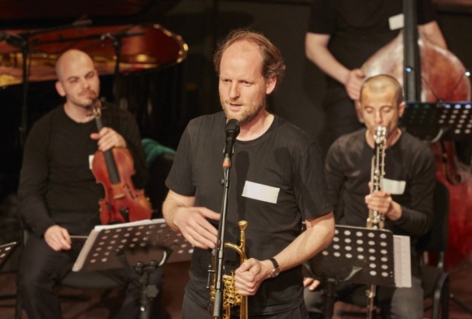 „Wenn man einen Trauermarsch viermal so schnell spielt, dann wird er zur Polka. Wenn wir das alle begreifen würden, dann wäre uns sehr geholfen“, ist da zu lesen und zum Beweis startet der exzellent eingespielte Klangkörper der Musicbanda in einen Trauermarsch, der sich wandelt, vor Lebensfreude sprüht und einen ersten Eindruck verschafft, was Schett meint. Vom ersten Moment an nimmt das Publikum das Programm an, der zündende Funke aus Spielfreude und verquer-kluger Weltbetrachtung springt ansatzlos über.