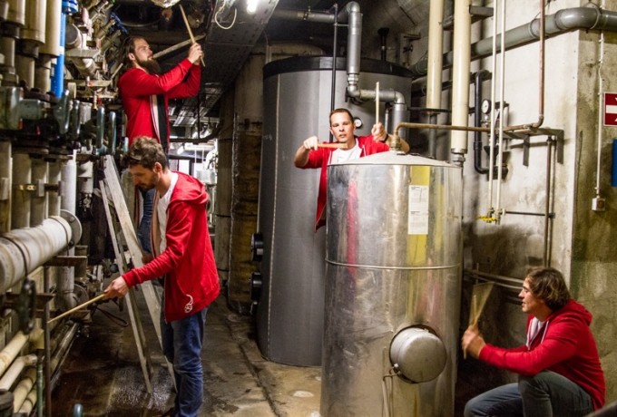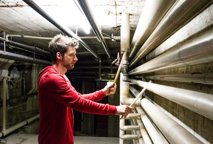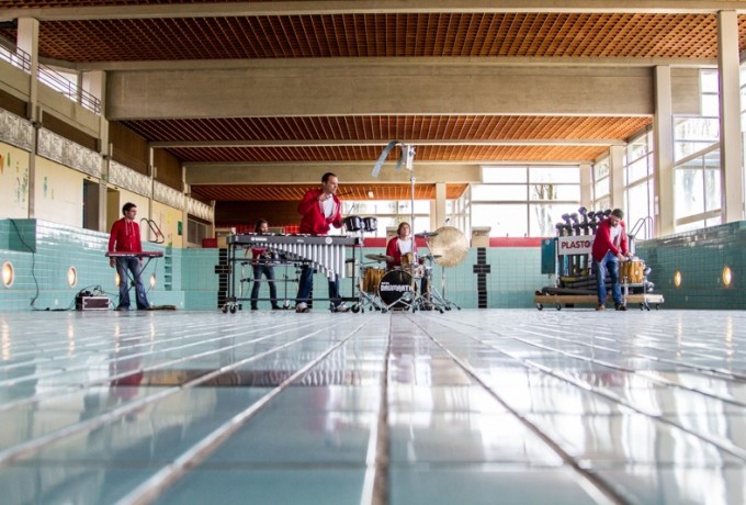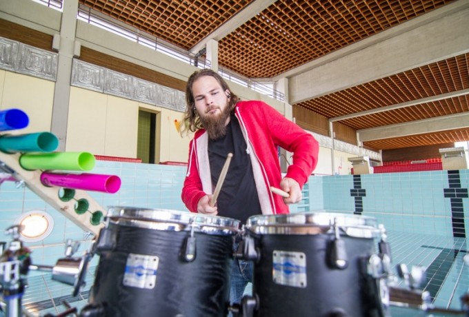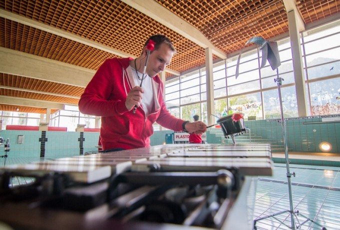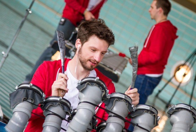 Alltagsgegenstände wie Tonnen und Kübel, sogar Sportgeräte oder Leitern werden von Drumartic bei Konzerten und Musikaufnahmen eingesetzt. Zum Schlagwerk-Fundus von Drumartic gehört auch das „Plastophon“, ein einzigartiges, selbstgebautes Percussion-Instrument aus Rohrteilen. Für den Videodreh im leeren Dolomitenbad kamen eben das Plastophon, Schlagzeug, Trommeln, Keyboard und Vibraphon zum Einsatz.