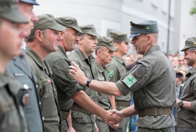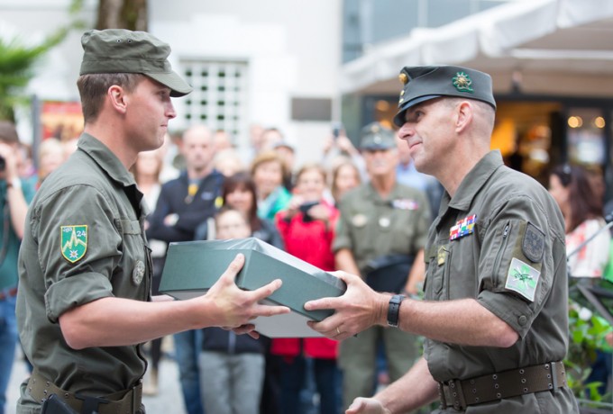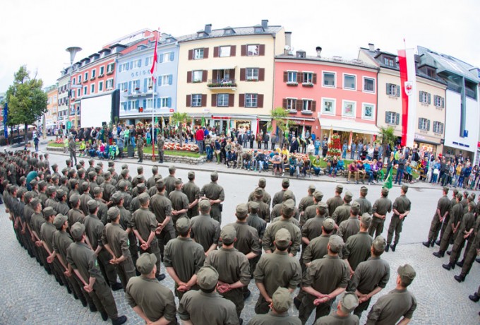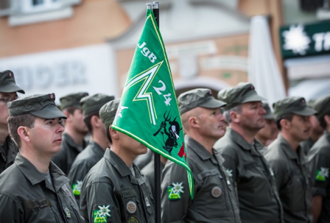 Das Jägerbataillon 24, das in Lienz und St. Johann in Tirol stationiert ist, gehört zu den wenigen gebirgsbeweglichen Einheiten des Österreichischen Bundesheeres, die auch für internationale Einsätze zur Verfügung stehen. Der Bataillonskommandant, Oberstleutnant Bernd Rott, der passend zu seinem Bataillon selbst über reichlich Erfahrung in Auslandseinsätzen verfügt, u.a. aus Afghanistan, Bosnien, Kosovo und dem Golan, sprach in seiner Rede vom Zusammenhang zwischen der zum Teil sehr harten Ausbildung – erst kurz vor der Feier war das Bataillon von einem aus 13.000 Höhenmetern bestehenden mehrtägigen Marsch zurückgekehrt – und der Disziplin, Kameradschaft, Leistungskraft aber auch dem Leistungswillen der Rekruten.